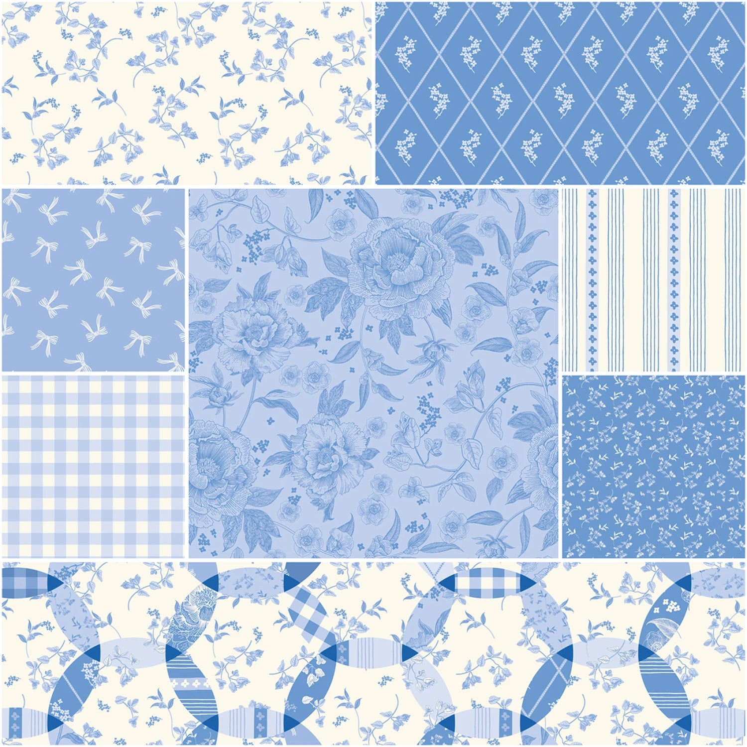 Penelope 1 Yard Bundle Sky, 8 Pcs Quilting Fabric | Riley Blake Designs